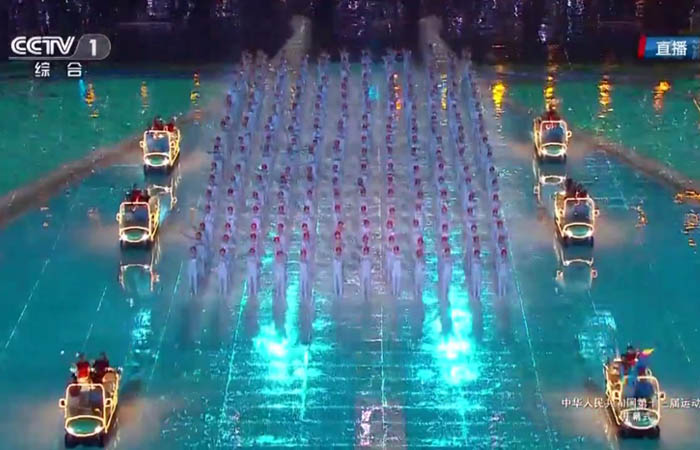 萬(wàn)人矚目的第十三屆全運(yùn)會(huì)于8月27日晚8點(diǎn)在天津奧林匹克體育中心“水滴”舉辦。本屆全運(yùn)會(huì)開(kāi)幕式的文藝展演由序幕潮起千帆和分別反映天津迎全運(yùn)、健康中國(guó)、迎接未來(lái)主題的三幕展演組成。通過(guò)強(qiáng)烈吸睛、嘆為觀止的3D效果,再加上表演者的動(dòng)態(tài)有機(jī)結(jié)合,上演了一場(chǎng)聲光電的視覺(jué)盛宴。