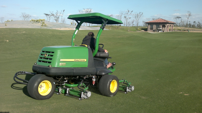 為打造頂級(jí)錦標(biāo)賽事球場(chǎng),從設(shè)計(jì)建造至今,覽海國(guó)際高爾夫俱樂部配備了綠友提供的草坪養(yǎng)護(hù)設(shè)備,一應(yīng)俱全。高端上檔次的配置,為日后草坪的養(yǎng)護(hù)提供了堅(jiān)強(qiáng)的保障,其中美國(guó)迪爾公司的8000E混合動(dòng)力坐騎式五聯(lián)球道剪草機(jī)就成了其中的一大“功臣”。18英寸QA5刀組,兼?zhèn)湎冗M(jìn)的油電混合技術(shù),起早摸黑,征服了連綿起伏的球道,贏得了俱樂部草坪總監(jiān)及其團(tuán)隊(duì)的一致肯定。馳騁美巡,盼其再續(xù)輝煌征程。