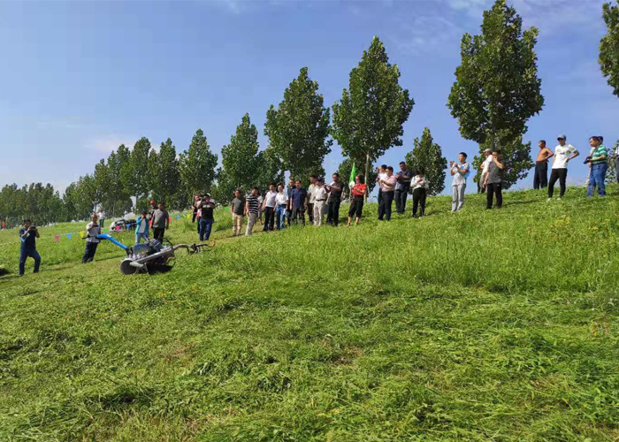 今年夏天,綠友集團(tuán)相關(guān)人員和德國Brielmaier公司兩名工程師一行來到山東東營市,在酷日和暴雨的黃河大堤上檢驗這臺多功能剪草機(jī)的使用效果。