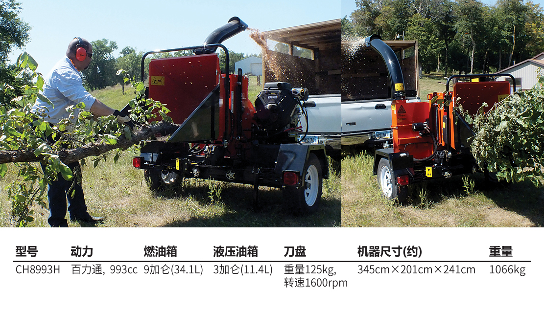 老熊(BEARCAT)品牌樹枝粉碎機(jī),配置百力通先鋒993cc發(fā)動機(jī),最大可切削直徑20cm樹枝。
