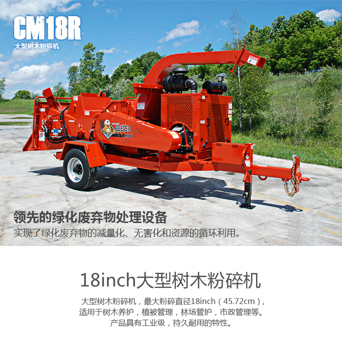 大型樹木粉碎機(jī),最大粉碎直徑18inch(45.72cm),適用于樹木養(yǎng)護(hù),植被管理,林場管護(hù),市政管理等。產(chǎn)品具有工業(yè)級,持久耐用的特性。