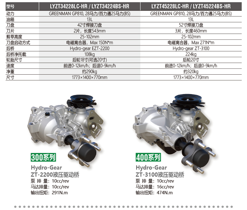 · 選用美國(guó)Hydro-gear EZT 液壓驅(qū)動(dòng)系統(tǒng),
