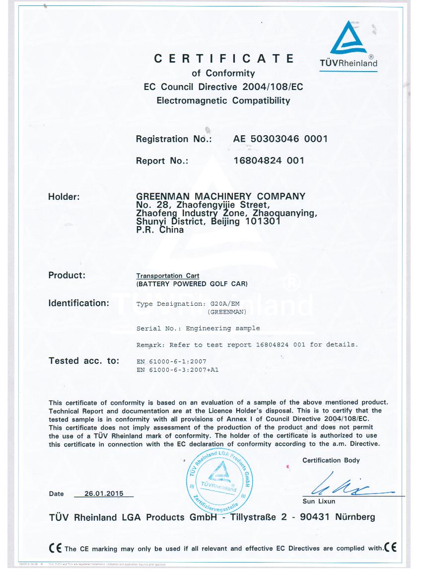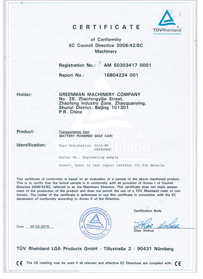 綠友集團(tuán)自主研發(fā)的GREENMAN兩座電瓶車golf car通過(guò)了CE認(rèn)證。