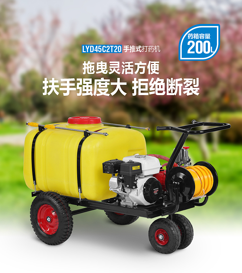 200L手推機動噴霧機是一款結構緊湊,靈活實用的園林植保作業(yè)機具。