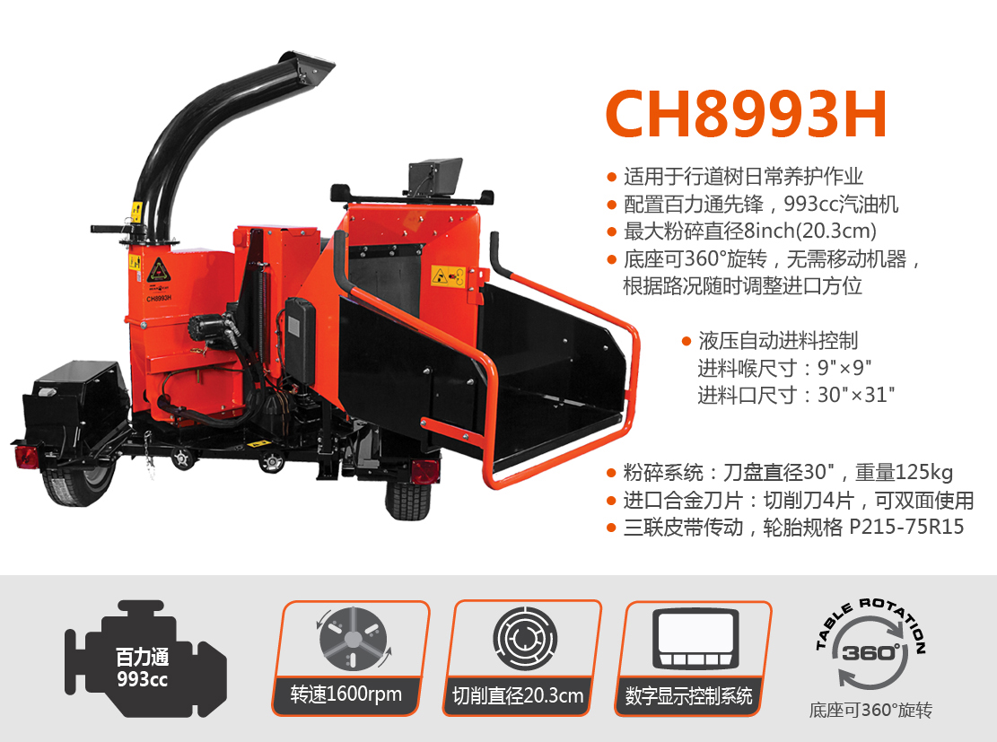 老熊(BEARCAT)品牌樹枝粉碎機(jī),配置百力通先鋒993cc發(fā)動機(jī),最大可切削直徑20cm樹枝。