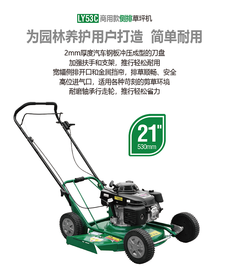 經(jīng)典純側(cè)草坪機(jī),是根據(jù)國(guó)內(nèi)草坪修剪習(xí)慣,設(shè)計(jì)的一款性價(jià)比高的草坪修剪機(jī),結(jié)構(gòu)簡(jiǎn)單耐用,寬大側(cè)排草開(kāi)口配置金屬金屬擋簾,安全耐磨。